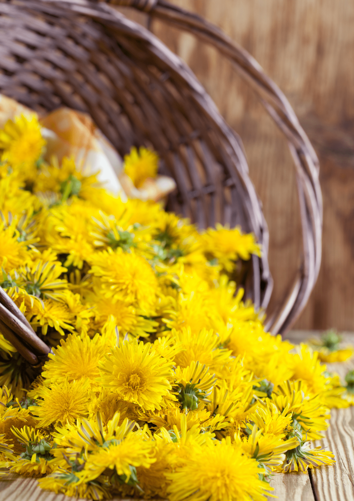 Materiali: Tarassaco, cestino in vimini, ciotole, farina, acqua, sale e zucchero